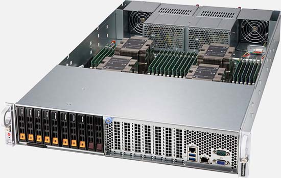 The Broadberry 2049P-TN8R is a quad-socket server solution powered by Intel Xeon Scalable processors, has a huge RAM capacity of 6TB and features 8x 2.5"hotswap U.2 NVMe drives bays and 2x 2.5" SATA drives.