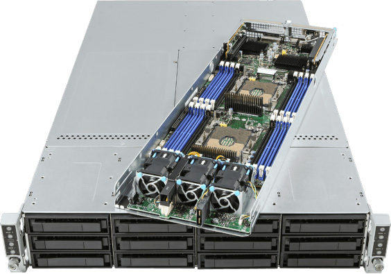 4 Nodes, Redundant Power Supply, Dual Intel 10GbE network ports, 2x PCIe x16 Gen3 slots