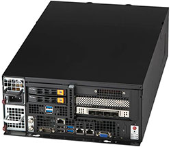 Ideal for Artificial Intelligence, Machine Learning and Edge Computing. 2x PCI-E 5.0 x16 FHFL slots, 1x PCI-E 5.0 x16 (LP) Slot. Redundant 600W DC power supply, 2x 2.5" Internal SATA drives