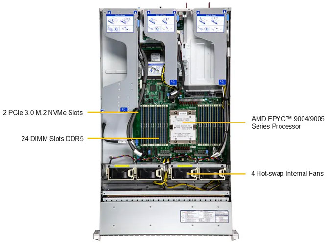2U, Dual AMD EPYC 9004 Processors, Supports 3x Dual Slot GPU Cards, Ideal for Video Production, Virtualisation & 2000W Reduandant PSU, Supports GRAID, 16x NVMe & 8x NVMe/SATA/SAS Hot Swap Drive Bays.