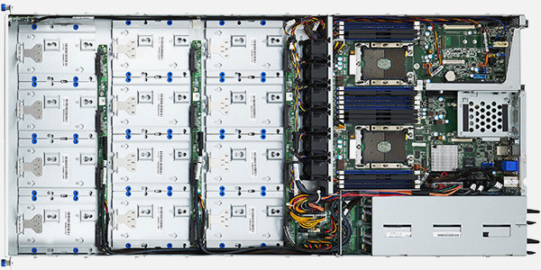 This server supports SATA drives, which are very cost-effective and adept at dealing with mass storage.