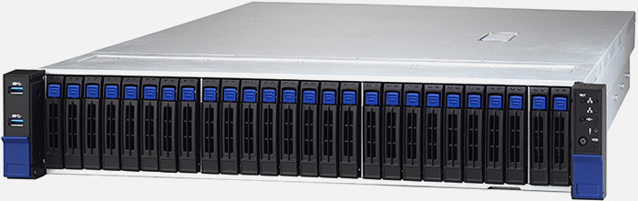 This server solution can be configured with 2.5" drives, which usually provide more energy efficiency, cost efficiency and boosted flexibility.