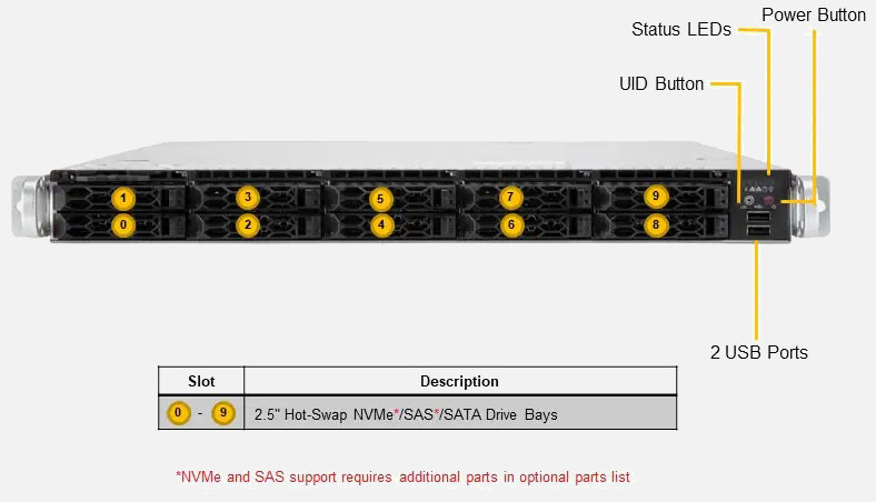 The Supermicro CloudDC A+ Server 1115CS-TNR | AS-1115CS-TNR features hot-swap hard drives, giving you more flexibility and allowing you to remove drives without having to shut down the system.