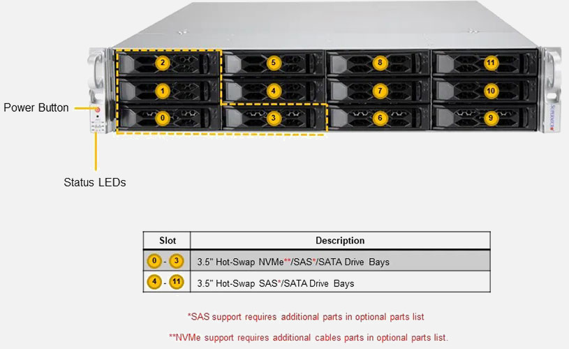 Optimised for web server, cloud computing and data centre use. AMD EPYC 9004 Series Processor. Dual Redundant power supply. 12x 3.5/2.5" hot-swap SATA/SAS drive bays, 4x 3.5" NVMe hybrid drives