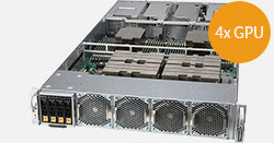 High Density 2U System with NVIDIA® HGX™ A100 4-GPU. Ideal for High-performance Computing (HPC) and Cloud Computing. 4 PCI-E Gen 4 x16 slots. Redundant power supply.