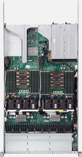 This system is capable of supporting up to 12 DIMMS per CPU. That’s a significant advancement on the previous limit, which was 9 DIMMS per CPU.
