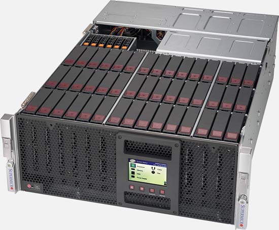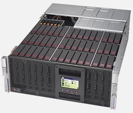 The Supermicro SSG-6049P-E1CR45L SuperStorage | 6049P-E1CR45L features hot-swap hard drives, giving you more flexibility and allowing you to remove drives without having to shut down the system.