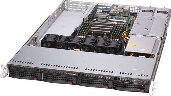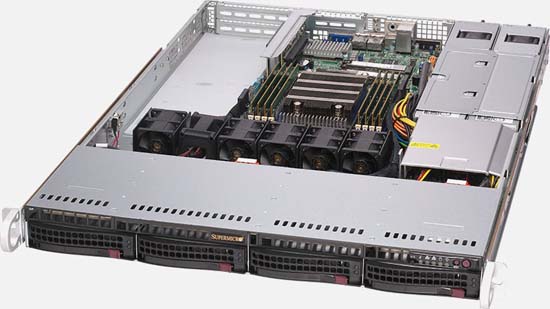 This solution can be configured with up to 4x hot-swap 3.5 SATA drives and up to 1TB of RAM. It also features 3x PCI-E expansion slots and 500W Redundant power supplies. For networking you have 2x 10GBase-T LAN ports.