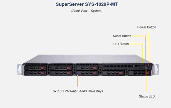 The Supermicro SuperServer 1029P-MT | SYS-1029P-MT supports the Intel Xeon Scalable Processors 2nd Generation family in a high-density 1U form-factor. These SuperServers are ideal for network infrastructure, front-end enterprise, and minimal-downtime cluster server systems.