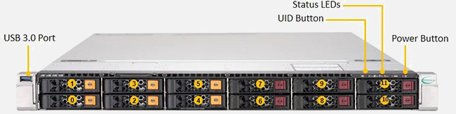 The Supermicro SuperServer 1029U-TN12RV-NEBS-DC | SYS-1029U-TN12RV-NEBS-DC features hot-swap hard drives, giving you more flexibility and allowing you to remove drives without having to shut down the system.