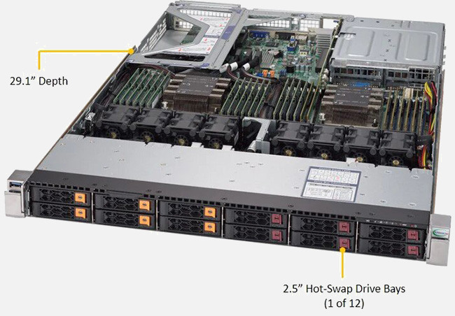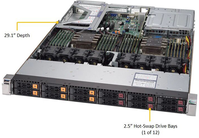 The Supermicro SuperServer 1029U-TN12RV-NEBS-DC | SYS-1029U-TN12RV-NEBS-DC can be configured with 2.5" drives, a more space efficient and low noise option. These drives also offer energy savings and increased flexibility.