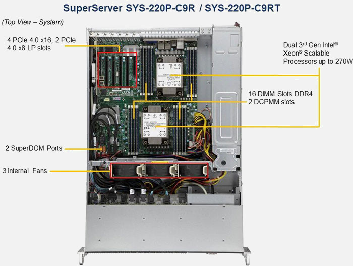 The Supermicro SuperServer SYS-220P-C9RT | SYS-220P-C9RT can be configured with 2.5" drives, a more space efficient and low noise option. These drives also offer energy savings and increased flexibility.