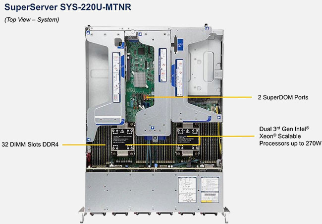 The Supermicro Ultra SuperServer SYS-220U-MTNR | SYS-220U-MTNR supports the Intel Intel Xeon Scalable Processors 3rd Generation family in a high-density 2U form-factor. These SuperServers are ideal for network infrastructure, front-end enterprise, and minimal-downtime cluster server systems.