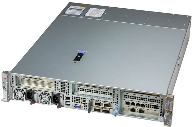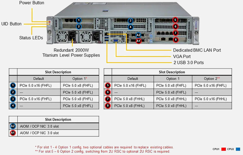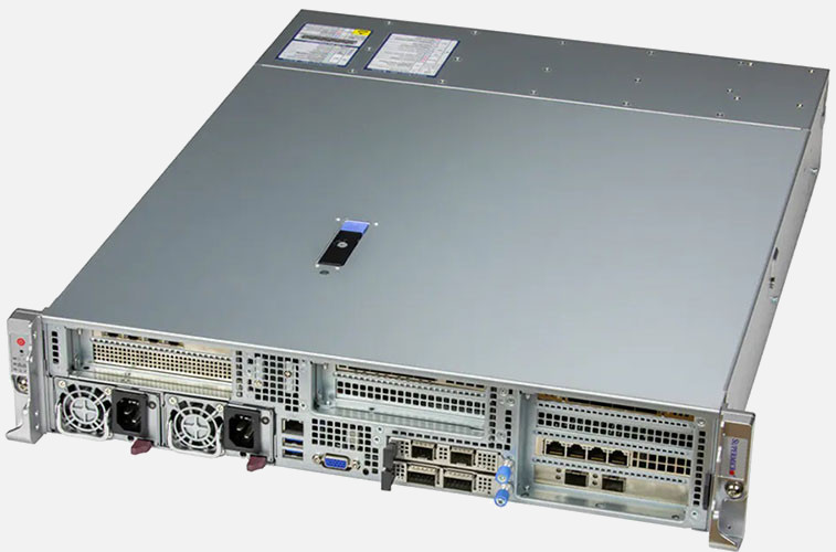 Ideal for AI, Machine Learning, Cloud Computing, Edge and Network Function Virtualisation. Up to 6x PCI-E 5.0 x16 FHFL slots, 2x PCI-E 5.0 x16 FHHL slots. Redundant 2000W Power Supply, 6x 2.5" hot-swap NVMe/SATA/SAS drive bays