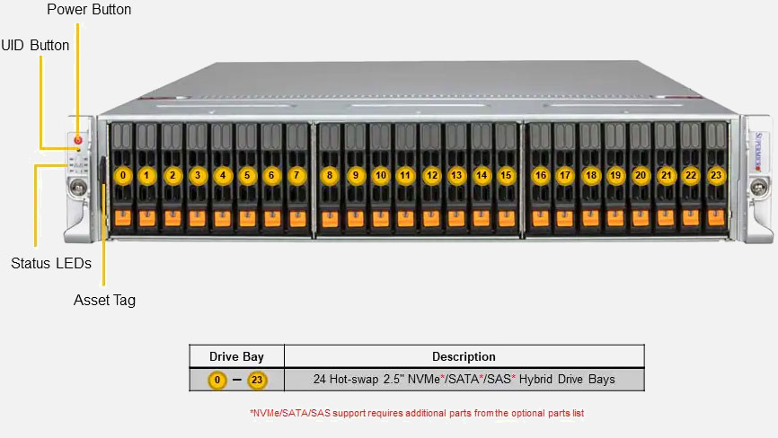 Dual Intel Xeon 6 6700 series Processor. Ideal for HPC, Cloud Computing and Networking Appliance. 4x PCI-E 5.0 x16 FHFL slots & 1x PCI-E 5.0 x8 FHFL Slot, 2000W Redundant Power Supply, 24x 2.5" NVMe/SATA/SAS Hot swap drive bays.