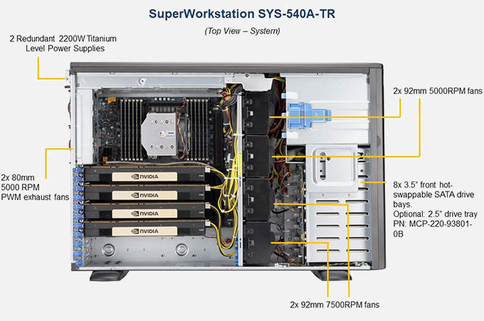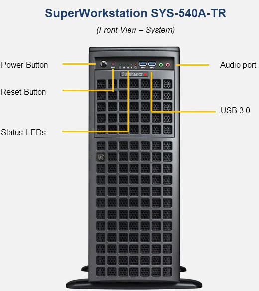 The Supermicro UP Workstation SYS-540A-TR | SYS-540A-TR features hot-swap hard drives, giving you more flexibility and allowing you to remove drives without having to shut down the system.