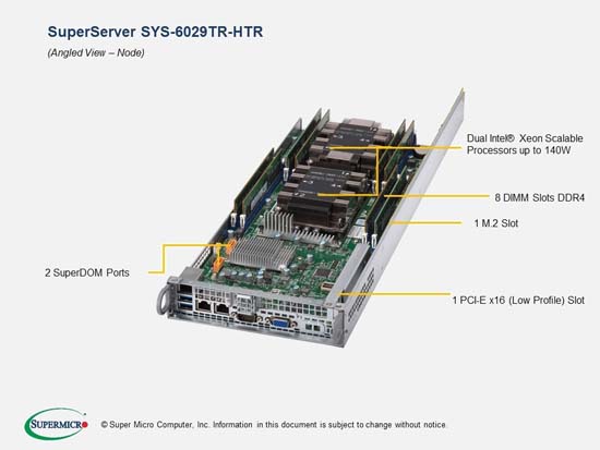 The Supermicro SYS-6029TR-HTR SuperServer | 6029TR-HTR supports the Intel Intel Xeon Scalable Processors 2nd Generation family in a high-density 2U form-factor. These SuperServers are ideal for network infrastructure, front-end enterprise, and minimal-downtime cluster server systems.