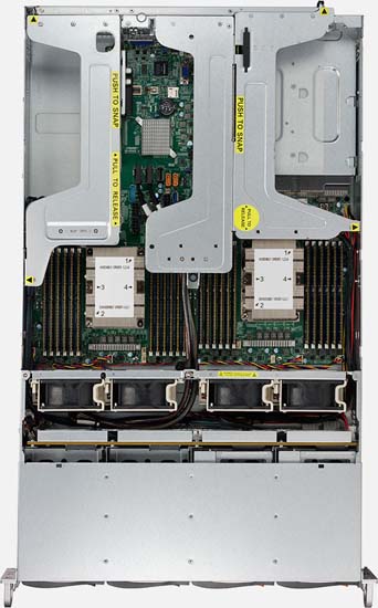 This system is capable of supporting up to 12 DIMMS per CPU. That’s a significant advancement on the previous limit, which was 9 DIMMS per CPU.
