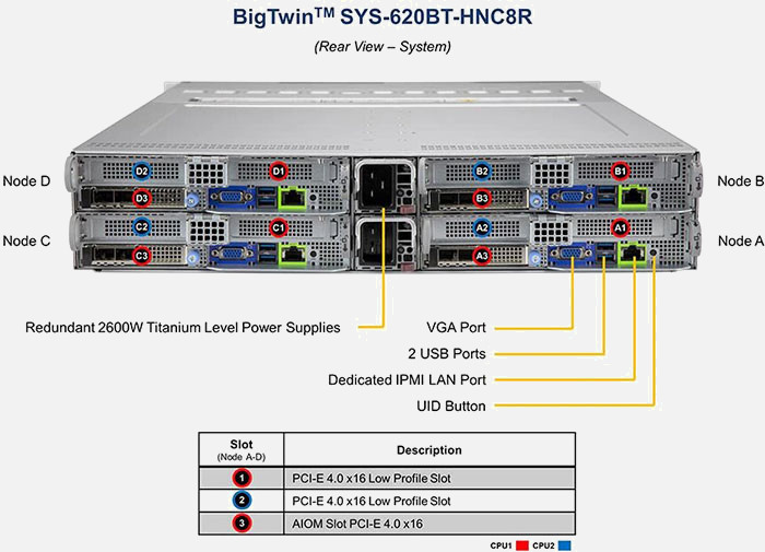 Optimised for hyperconverged infrastructure, scale-out file storage. Four hot-pluggable systems (nodes) in a 2U form factor. Redundant power supply.