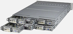 4 node solution optimised for HPC, hyper-converged infrastructure and big data. 2x PCI-E 4.0 x16 and 1x PCI-E 4.0 x8 slots per node. Redundant power.