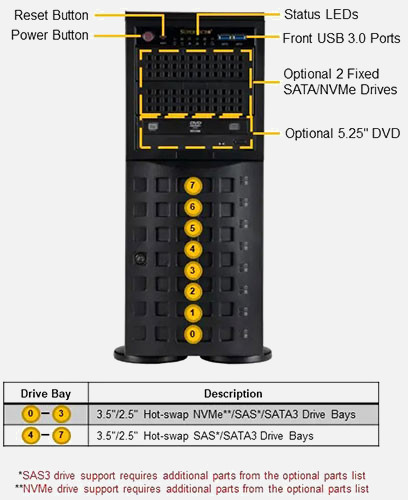 The Supermicro Mainstream SuperServer 741P-TR | SYS-741P-TR features hot-swap hard drives, giving you more flexibility and allowing you to remove drives without having to shut down the system.
