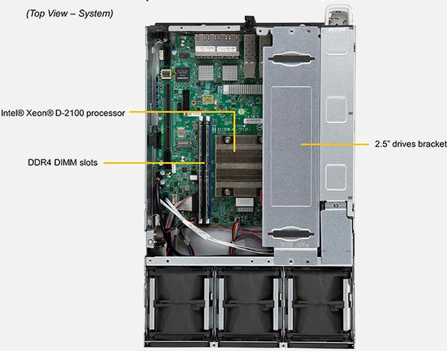 The Supermicro SuperServer E403-9D-16C-FRDN13+ | SYS-E403-9D-16C-FRDN13+ can be configured with 2.5" drives, a more space efficient and low noise option. These drives also offer energy savings and increased flexibility.