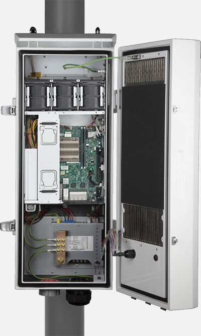IP65 enclosure for harsh outdoor environments. GR-3108-CORE / GR-487-CORE compliant. High-efficiency heat exchanger and 300W heater. Cabinet intrusion detection and self-diagnosis.