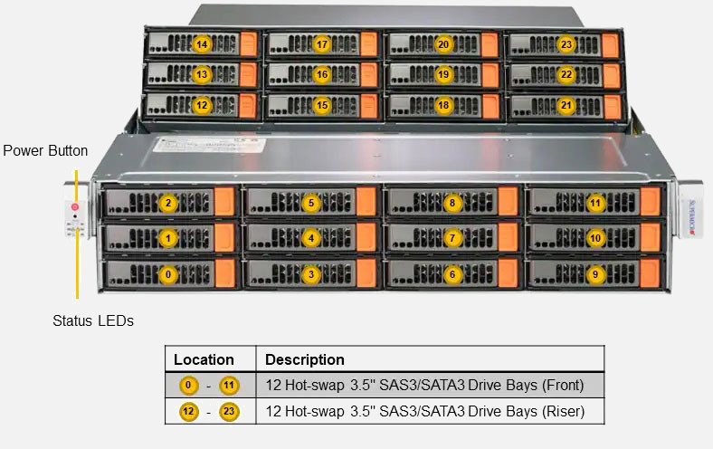 The Supermicro Storage A+ Server 2015S-E1CR24L | ASG-2015S-E1CR24L features hot-swap hard drives, giving you more flexibility and allowing you to remove drives without having to shut down the system.