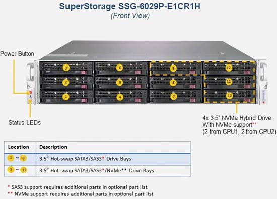Configure the Supermicro SuperStorage 6029P-E1CR12H | SSG-6029P-E1CR12H with 3.5" drives. These drives are more cost-effective, offer a larger storage capacity and offer more flexibility.