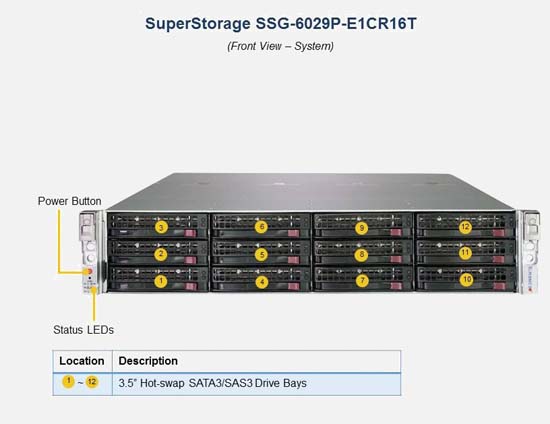 The Supermicro SuperStorage 6029P-E1CR16T | SSG-6029P-E1CR16T supports the Intel Intel Xeon Scalable Processors 2nd Generation family in a high-density 2U form-factor. These SuperServers are ideal for network infrastructure, front-end enterprise, and minimal-downtime cluster server systems.