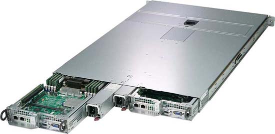 This server was designed to increase computing density while reducing cost, as well space and energy requirements. This 1U Twin supports Intel Xeon Scalable processors.