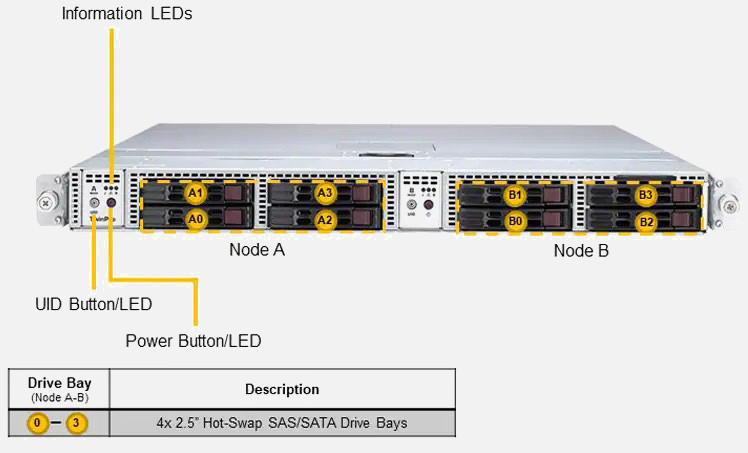 Ideal for High Performance Computing, Big Data / Big Science and Hyper-Converged Infrastructure. Dual Node 1U Form Factor. Redundant 1000W Power Supply, 4x 2.5" hot-swap SATA drive bays (Per Node).