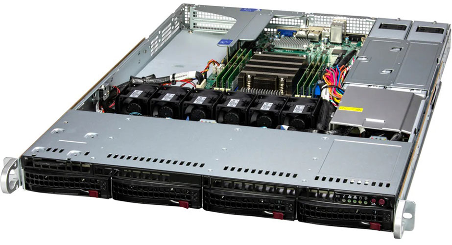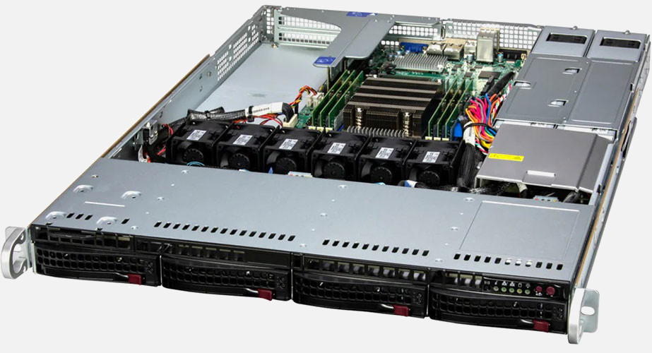 Ideal for Virtualisation, Edge/Cloud Computing Services server. Supports 1x FHFL Dual slot Graphics Card, 860W Redundant power supply, 4x 3.5"/2.5" NVMe/SATA/SAS hot swappable drive bays.