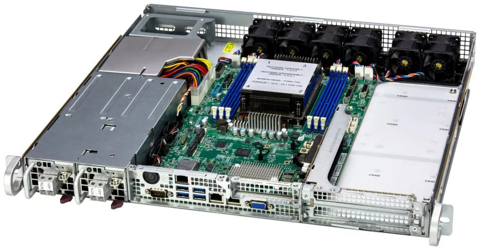 Ideal for Virtualisation, Edge/Cloud Computing Services server. Supports 1x Dual-Slot GPU Card. 2x PCIe 5.0 x16 FHFL & 1x PCIe 5.0 x16 LP, 800W DC Redundant power supply, 2x 2.5" NVMe/SATA/SAS internal drive bays.