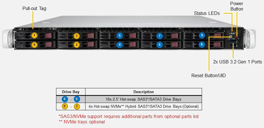 The Supermicro UP SuperServer SYS-110P-WR | SYS-110P-WR features hot-swap hard drives, giving you more flexibility and allowing you to remove drives without having to shut down the system.