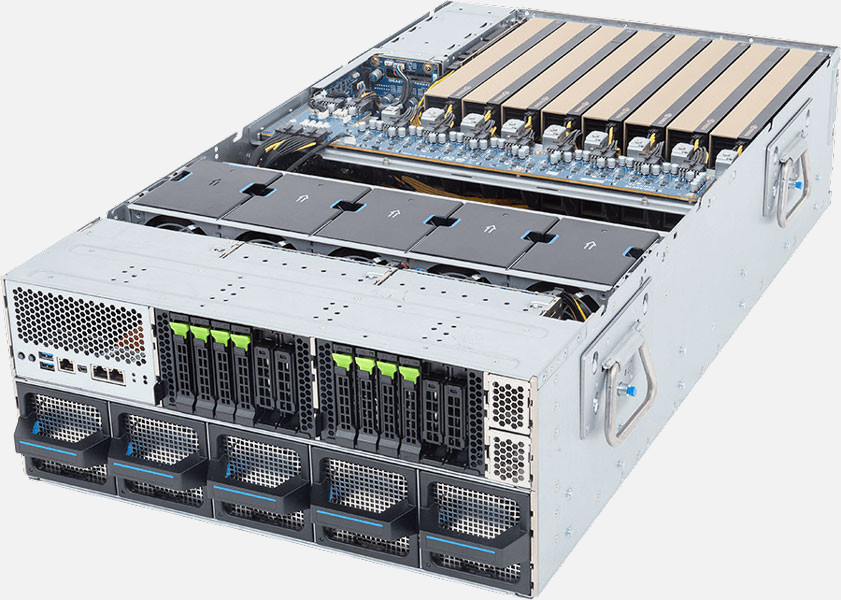 Dual Intel Xeon 6 Series processors, Supports 8x Dual slot Gen5 GPUs, dual 10Gb/s LAN ports, redundant power supply, 12x 2.5" NVMe/SATA/SAS & 4x SATA/SAS hot-swappable bays.