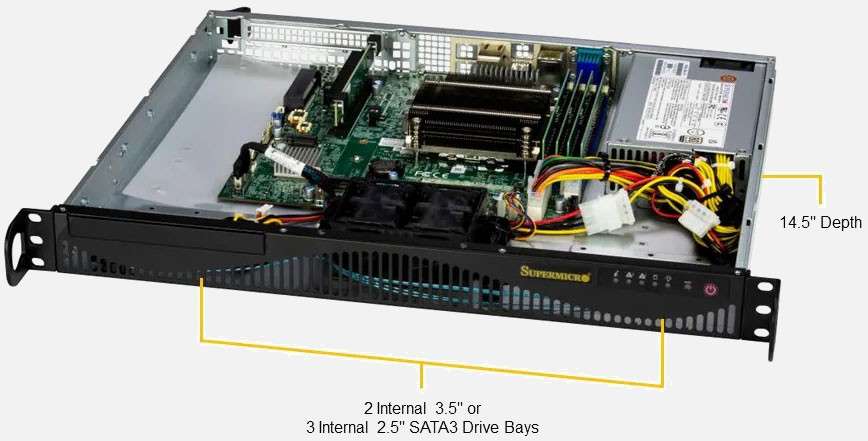 The CyberServe Xeon E-102S G14 is a Very Short Depth 1U rackmount server, and 2 x 2.5inch internal drive bays.