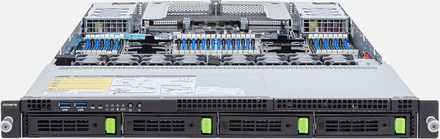 Dual 5th/4th Gen Intel Xeon Scalable processors, dual 1Gb/s LAN ports, redundant power supply, 4x 3.5/2.5" NVMe/SATA/SAS hot-swappable bays.